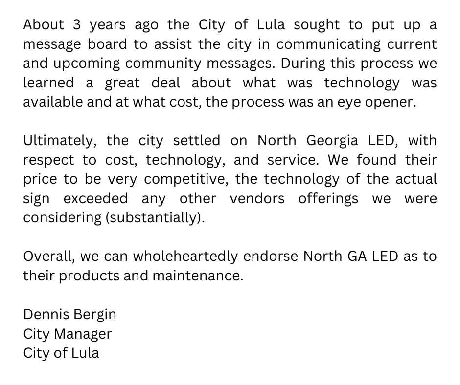 ~Dennis Bergin, City Manager, Lula, Georgia.